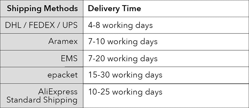 We will ship all orders within 48 hours,all goods in our store are free shipping by post air mail.