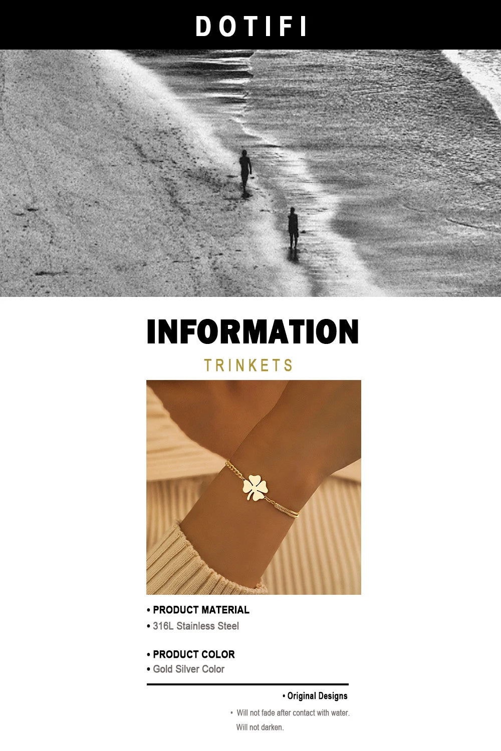 Stainless Steel Lucky Clover Bracelet for Women | Non-Fading High-Polished Pendant | Trendy Hip Hop Everyday Jewelry Gift